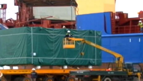 Lô hàng đầu tiên của hệ thống thiết bị lọc nước biển theo nguyên lý thẩm thấu ngược có trọng lượng trên 1.700 tấn được vận chuyển từ Khu kinh tế Dung Quất...