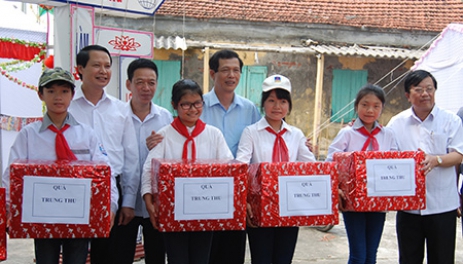 Đồng chí Nguyễn Hồng Chuyên, Ủy viên Ban Thường vụ, Trưởng ban Tuyên giáo Tỉnh ủy: Tặng quà Trung thu thiếu nhi xã Đông Lĩnh