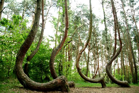 Khu rừng Crooked (Ba Lan) có khoảng 400 cây thông phát triển một cách kì lạ, đồng loạt uốn cong một góc 90 độ về phía bắc.