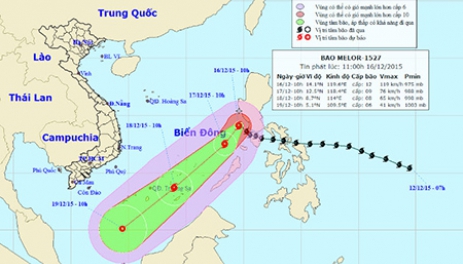 Rạng sáng 16/12, bão có tên quốc tế Melor đã di chuyển vào Biển Đông, trở thành cơn bão số 5 trong năm nay. “Tiếp tục kêu gọi tàu thuyền, theo dõi...