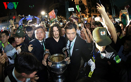 Tối 11/4, Puyol đã xuất hiện cùng chiếc cúp Champions League trong sự cuồng nhiệt của hàng ngàn CĐV Hà Nội.