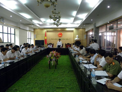 UBND tỉnh nghe và cho ý kiến Về nhiệm vụ 6 tháng cuối năm 2010 của huyện Tiền Hải & làm việc với huyện Quỳnh Phụ về công tác giải phóng mặt bằng.