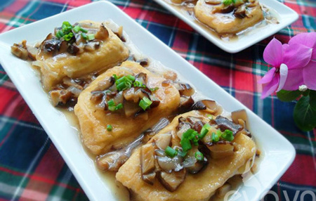 Đậu phụ sốt nấm chay cho lễ Vu Lan