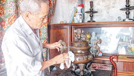 Trước ngày rằm tháng 8, chúng tôi tìm về gia đình ông Vũ Ngọc Tuấn (thôn Cổ Trai, xã Hồng Minh, huyện Hưng Hà), Chủ nhiệm Câu lạc bộ múa rồng, lân, sư tử...