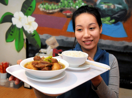 Đôi vợ chồng Việt làm thịt kho tàu trên đất Mỹ