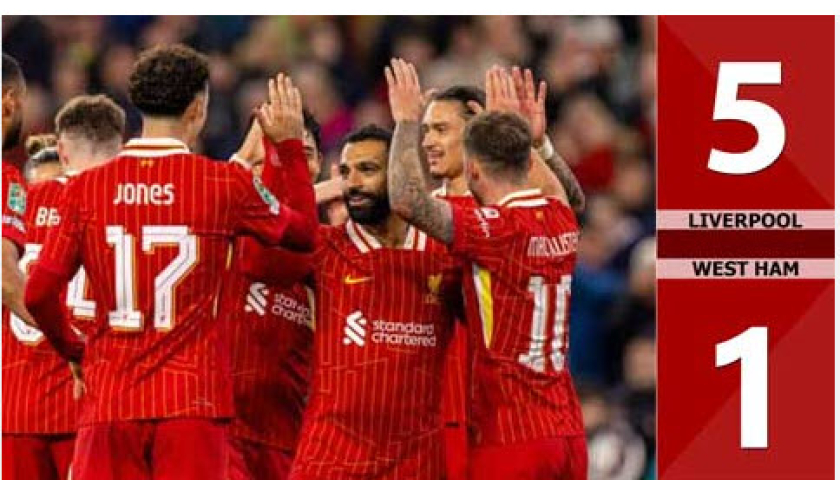 Kết quả bàn thắng Liverpool vs West Ham: 5-1 (Vòng 3 Cúp Liên đoàn Anh 2024/25)