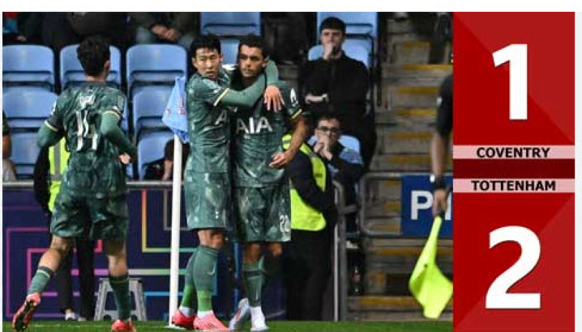 Kết quả bàn thắng Coventry vs Tottenham: 1-2 (Vòng 3 Cúp Liên đoàn Anh 2024/25)