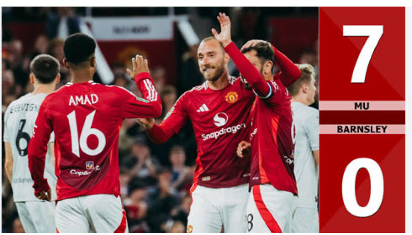 Kết quả bàn thắng MU vs Barnsley: 7-0 (Vòng 3 Cúp Liên đoàn Anh 2024/25)
