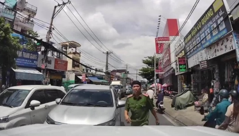 TP HCM - Tránh xe bật đèn khẩn cấp trước đèn đỏ, lái xe lấn sang làn đường ngược chiều để vượt tại Kha Vạn Cân.