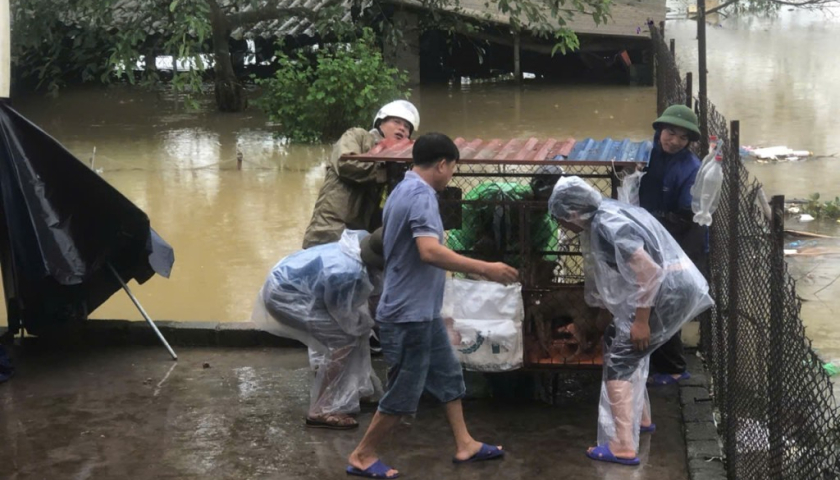 Hưng Hà: Vượt mưa di dời người và vật nuôi vào nơi tránh lũ an toàn