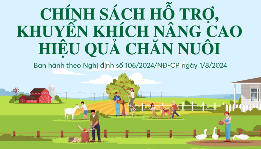 Một số chính sách hỗ trợ, khuyến khích nâng cao hiệu quả chăn nuôi được quy định tại Nghị định số 106/2024/NĐ-CP ban hành ngày 1/8/2024.