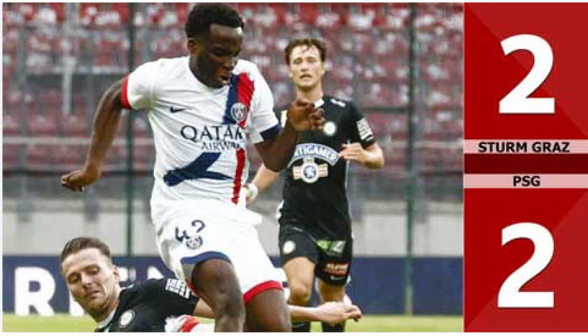 Kết quả bàn thắng Sturm Graz vs PSG: 2-2 (Giao hữu CLB 2024)