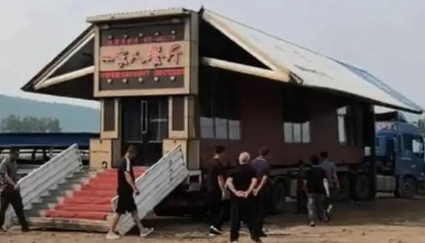 Chỉ trong vòng vài phút, các tấm sắt bên hông chiếc xe tải mở ra trở thành tường và mái của nhà hàng di động ở Nội Mông, Trung Quốc.