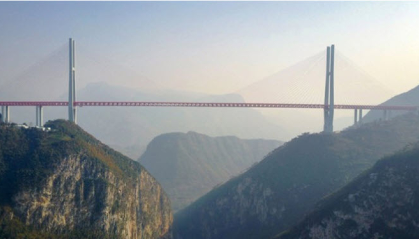 Cầu Bắc Bàn Giang (Trung Quốc) bắc qua một khe núi nối hai tỉnh Vân Nam và Quý Châu hiện giữ kỷ lục cầu cao nhất thế giới.