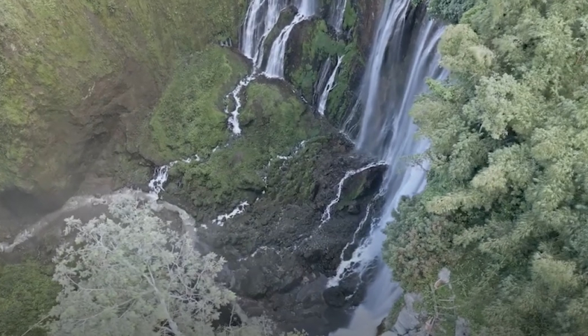 Nằm dưới chân núi lửa trên đảo Java (Indonesia) thác Tumpak Sewu cao gần 120m với vô số dòng nước nhỏ tạo nên bức tranh hùng vĩ giữa núi rừng.
