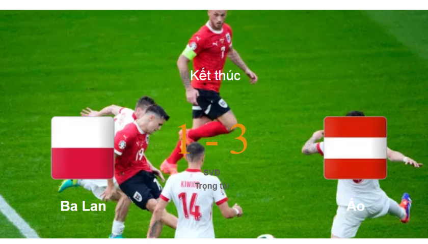 Ba Lan thua 1-3 trước Áo đêm 21/6 và chính thức nói lời chia tay EURO 2024 từ vòng bảng dù còn một trận chưa đá.