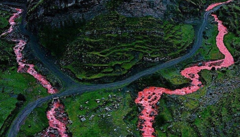Sông Palquella Pucamayu ở Peru có nước đỏ như máu kéo dài 5km, chảy qua các thung lũng đá ở dãy Vilcanota.