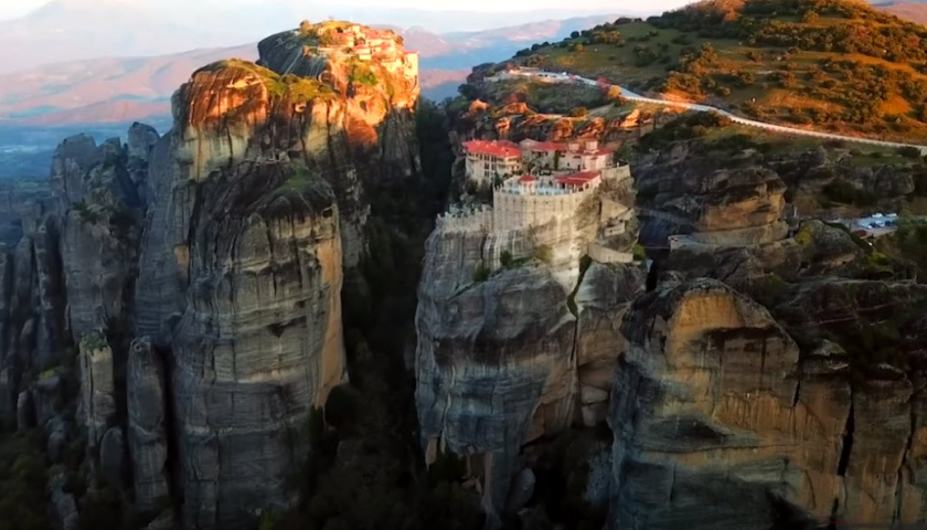 Tu viện Meteora (Hy Lạp) cao 550m, được xây dựng cheo leo trên vách đá sa thạch ở vùng đồng bằng Thessaly vào thế kỷ 14.
