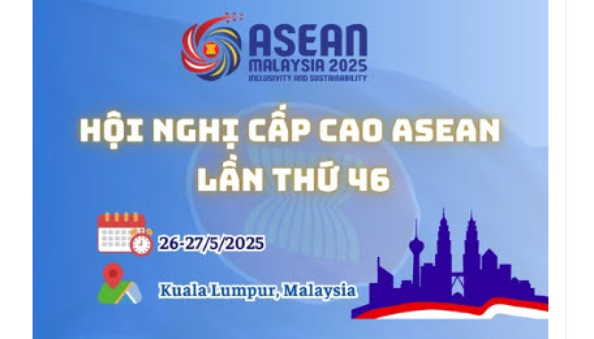Từ ngày 26-27/5/2025, Hội nghị cấp cao ASEAN lần thứ 46 và các Hội nghị cấp cao liên quan sẽ diễn ra tại Kuala Lumpur, Malaysia, quy tụ lãnh đạo cấp cao...