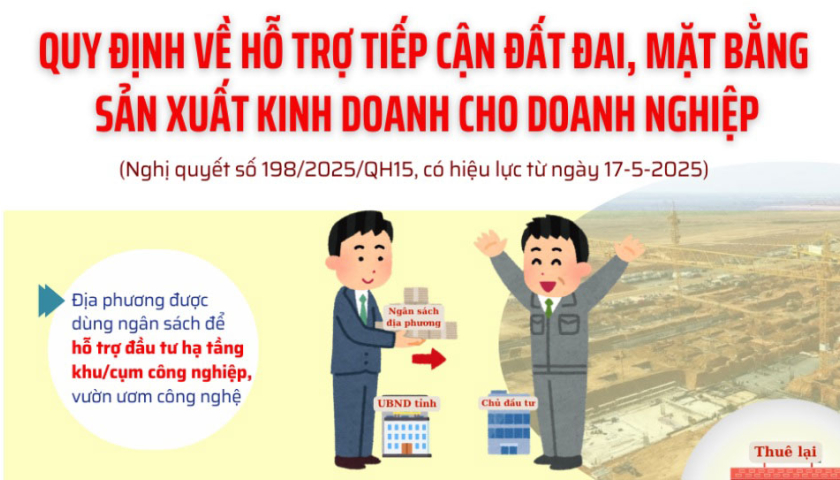 Quy định về hỗ trợ tiếp cận đất đai, mặt bằng cho doanh nghiệp