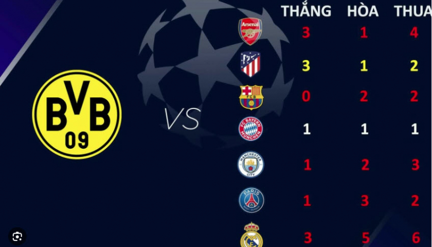 Mỗi đội góp mặt ở tứ kết Champions League 2023-2024 đều lép vế về đối đầu trước ít nhất một trong bảy đối thủ còn lại.