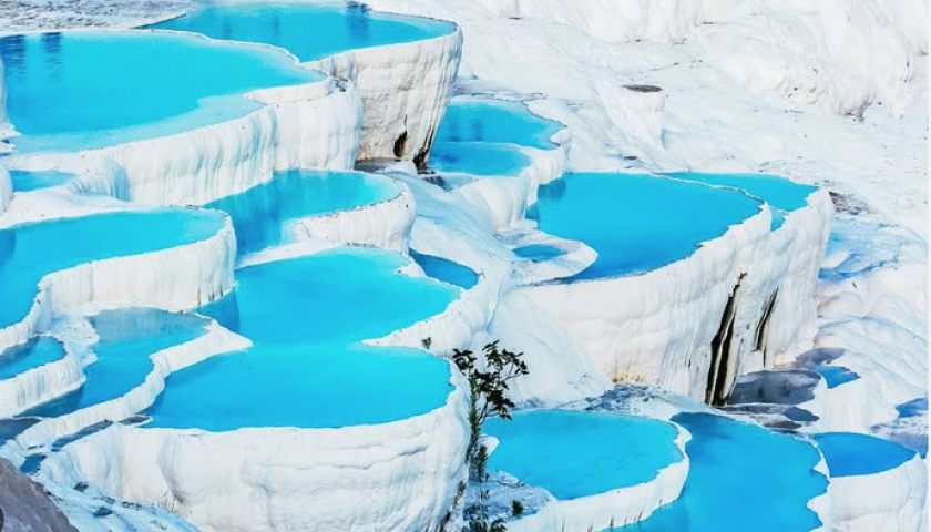 Pamukkale là ngọn núi được tạo nên từ các nhũ đá vôi. Du khách đến đây có thể bỏ giày để đi chân trần cảm nhận điều kỳ diệu của địa chất nơi đây.