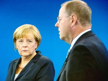 Ngày 3/9, Thủ tướng Đức Angela Merkel thuộc đảng Liên minh Dân chủ Cơ đốc giáo (CDU) và đối thủ Peer Steinbrueck thuộc đảng Dân chủ Xã hội (SDP) đã vẽ lên...