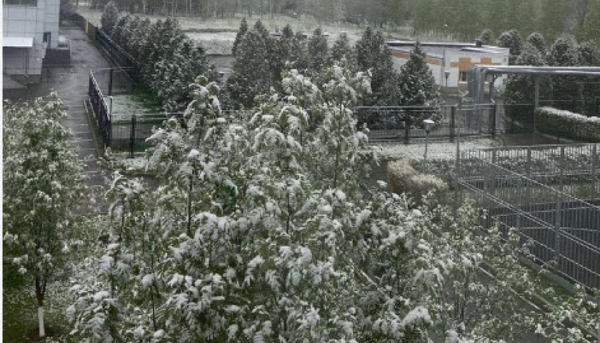 Dù đã bước sang tháng 5, người dân sinh sống ở Moskva (Nga) bất ngờ chứng kiến cảnh tượng tuyết rơi phủ trắng đường phố, nhà cửa.