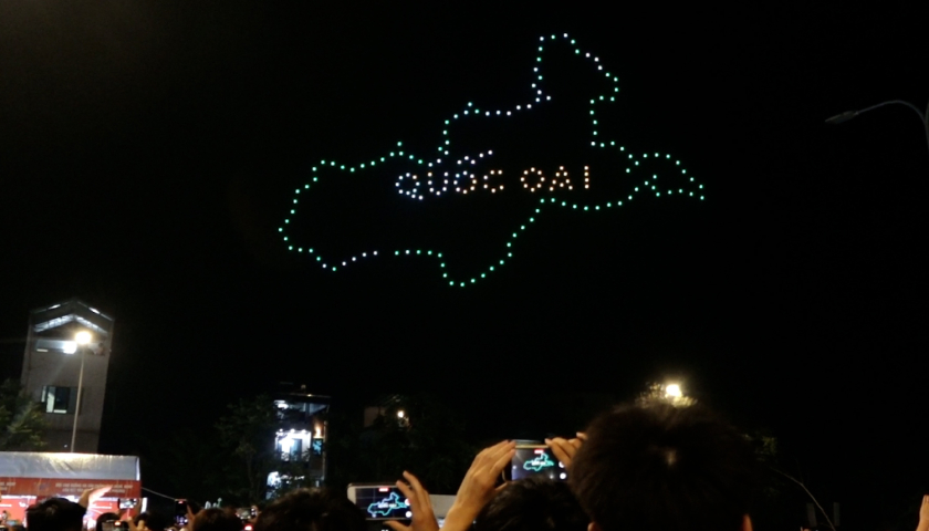 Du khách hào hứng xem 200 drone xếp hình trong đêm khai hội chùa Thầy
