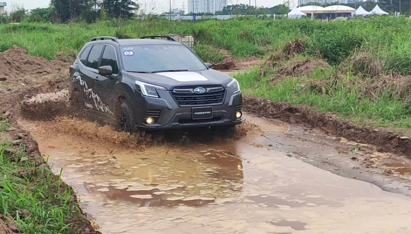 Thử thách lái xe qua vách nghiêng đôi, hố sâu bùn lầy trơn trượt, đường đá hộc, ổ voi sole, hố nước sâu 500 mm.