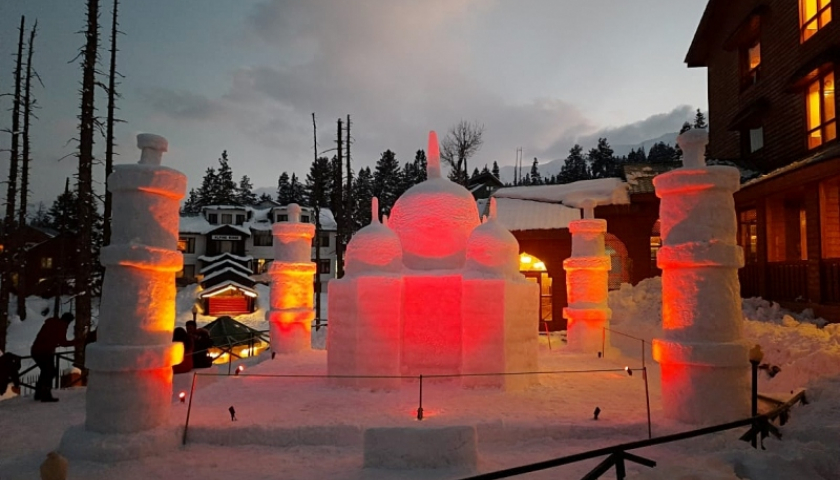 Đền Taj Mahal bằng tuyết cao 6m và rộng hơn 10m do nhóm nghệ nhân Ấn Độ xây dựng nhằm phát triển du lịch địa phương.
