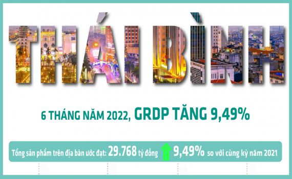 6 tháng năm 2022, tốc độ tăng trưởng kinh tế (GRDP) của tỉnh Thái Bình đạt 29.768 tỷ đồng, tăng 9,49% so với cùng kỳ năm 2021. Trong đó, nông, lâm nghiệp,...