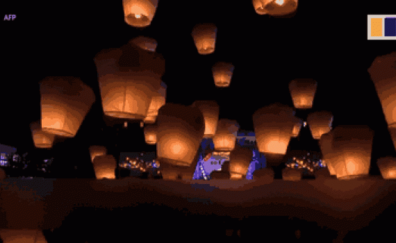 Hàng nghìn chiếc đèn trời được người dân thả vào không trung ở TP Tân Đài Bắc, Đài Loan trong lễ hội đèn lồng diễn ra hằng năm.
