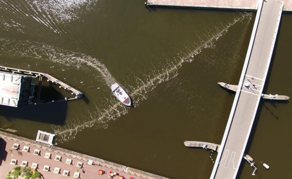 Rào chắn Great Bubble Barrier bắc ngang qua sông, giúp ngăn rác nhựa trôi ra biển và đạt hiệu quả 86% trong thử nghiệm.