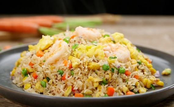 Món cơm rang tôm trứng dưới tay đầu bếp chuyên nghiệp