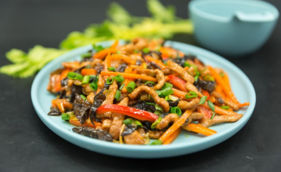 Thịt heo thái sợi được ướp và chế biến đậm đà với nhiều loại gia vị là món mặn khiến bữa cơm gia đình thêm phong phú.