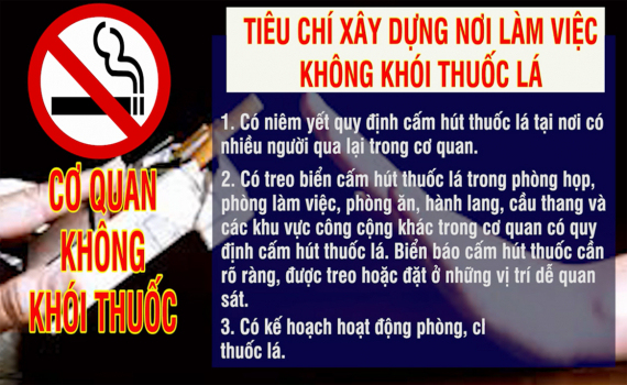 Nơi làm việc không khói thuốc lá là nơi không có hành vi hút thuốc lá tại các khu vực trong nhà và không có hiện tượng quảng cáo, tiếp thị, kinh doanh các...