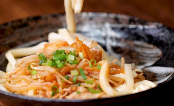 Sợi mì udon dai dai kết hợp cùng thịt heo, giá đỗ và kim chi mang lại cho bạn món ăn đơn giản nhưng hấp dẫn.