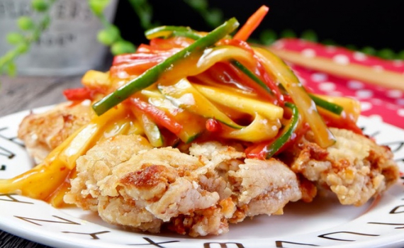 Thịt gà được chế biến giòn rụm bằng nồi chiên không dầu, quyện với sốt xoài chua cay kiểu Thái giúp bạn có món ăn mới lạ cho cả gia đình.