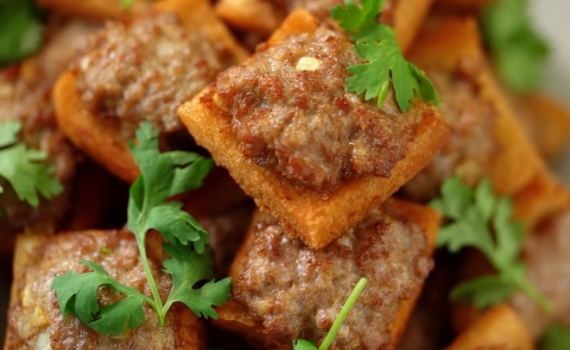Bạn có thể thử làm món snack giòn rụm đãi gia đình với sandwich và thịt heo.