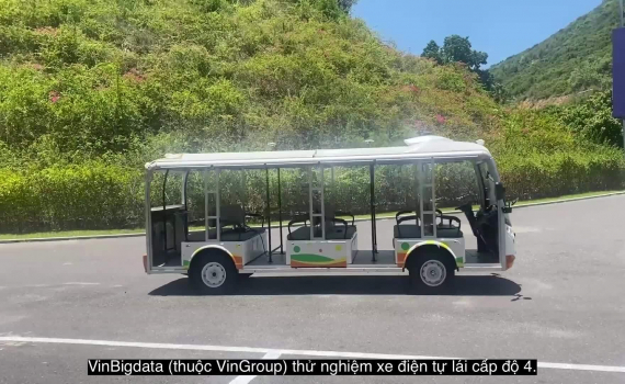 Mẫu xe điện (23 chỗ) với tốc độ tối đa 30 km/h, không cần người lái do VinBigdata thử nghiệm, dự kiến đưa vào hoạt động từ 2022.