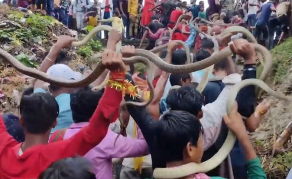 Bất chấp dịch bệnh, hàng trăm tín đồ Hindu vẫn nhảy múa và diễu hành với rất nhiều rắn tại lễ hội ở bang Bihar, cuối tháng 7.