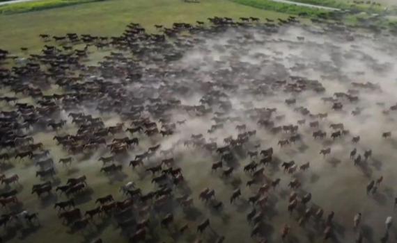 Đoạn video ngoạn mục với hàng nghìn con ngựa phi nước đại được ghi lại trong lễ hội Naadam diễn ra hôm 13/7.