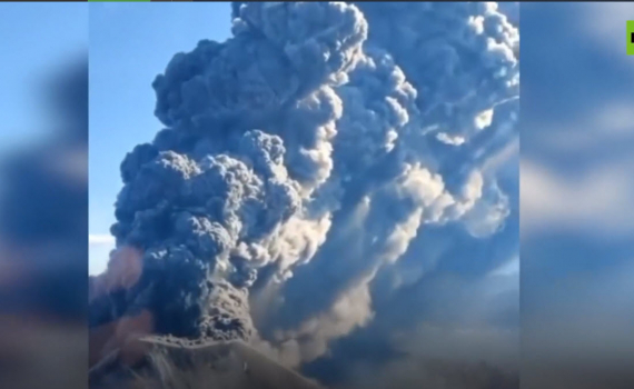 Núi lửa phun trào ở Nga, tạo cột tro bụi khổng lồ