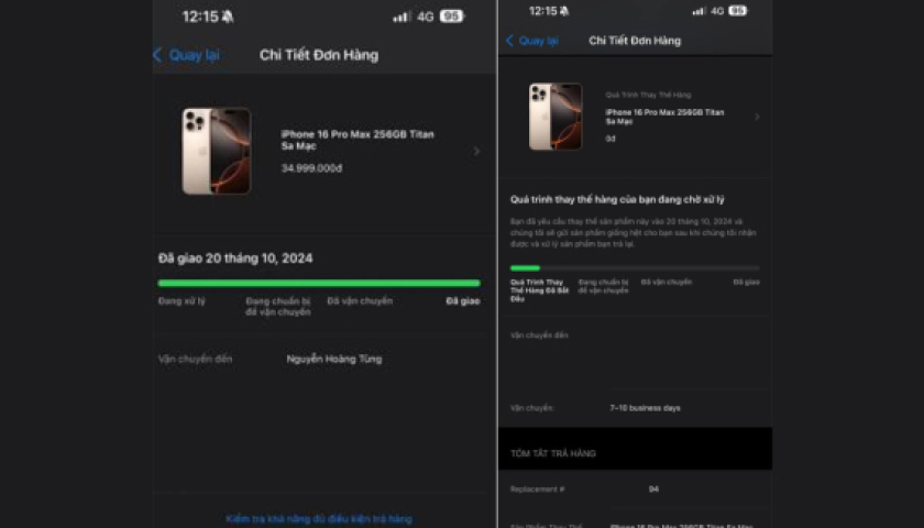 Sau khi đặt mua iPhone 16 Pro Max nhưng nhận hộp rỗng, anh Hoàng Tùng cho biết đã được Apple tạo đơn hàng gửi bù nhưng thời gian giao dự kiến đầu tháng...
