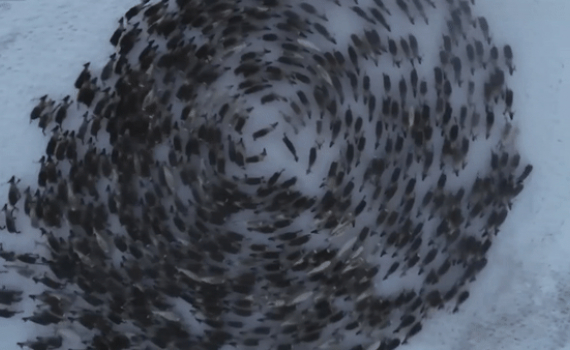 Khi hoảng sợ, đàn tuần lộc ở thành phố Murmansk, Nga chạy thành hình vòng tròn để những con thú săn mồi khó có thể nhắm vào một mục tiêu nào.