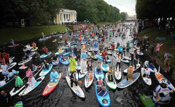 Đầu tháng 8, người dân thành phố St. Petersburg (Nga) và khách du lịch đã hóa trang và đổ xuống sông Fontanka để tham dự lễ hội chèo ván đứng thường niên...