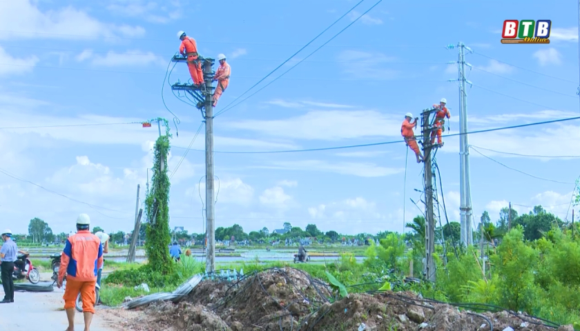 Theo báo cáo của Điện lực Kiến Xương, đến chiều ngày 9/9, đơn vị đã đóng điện 15/15 đường dây trung thế và 100% trạm biến áp công cộng, cấp điện cho khách...