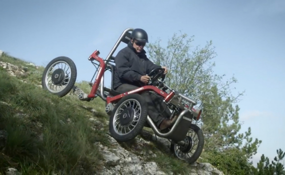 Xe điện 4 bánh e-Spider di chuyển với tốc độ chỉ khoảng 25 km/h, được thiết kế rất linh hoạt, có thể trèo lên dốc hay đi qua hào rãnh.