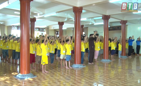 Sáng ngày 22/6, chùa Khánh Sơn, xã Quỳnh Giao, huyện Quỳnh Phụ tổ chức khai mạc khóa tu mùa hè cho học sinh.